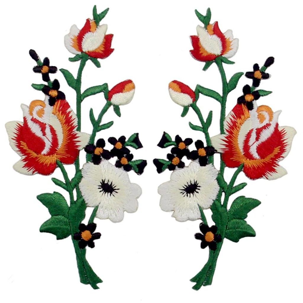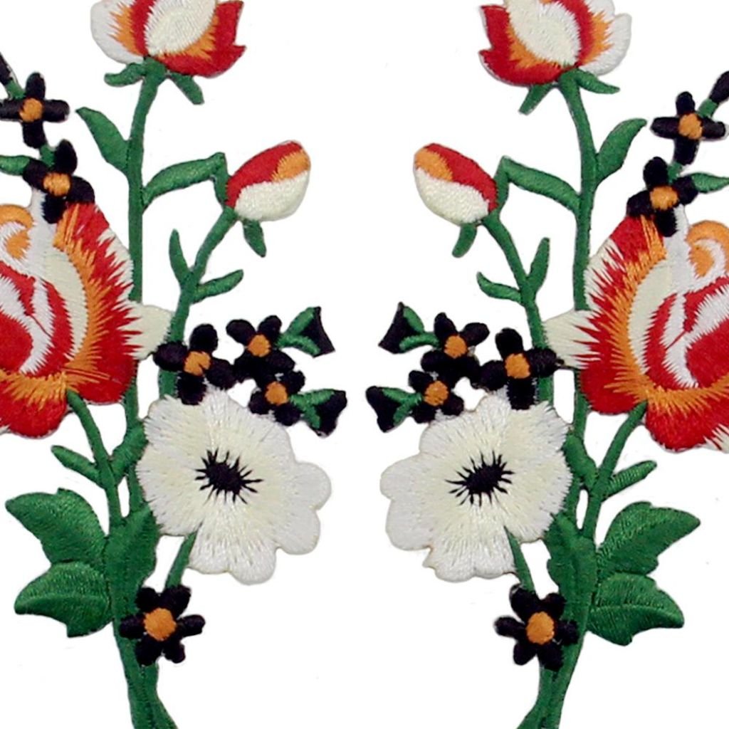 Nažehlovací nášivka Červené kvítí (2 v sadě) 5,8 x 11 cm