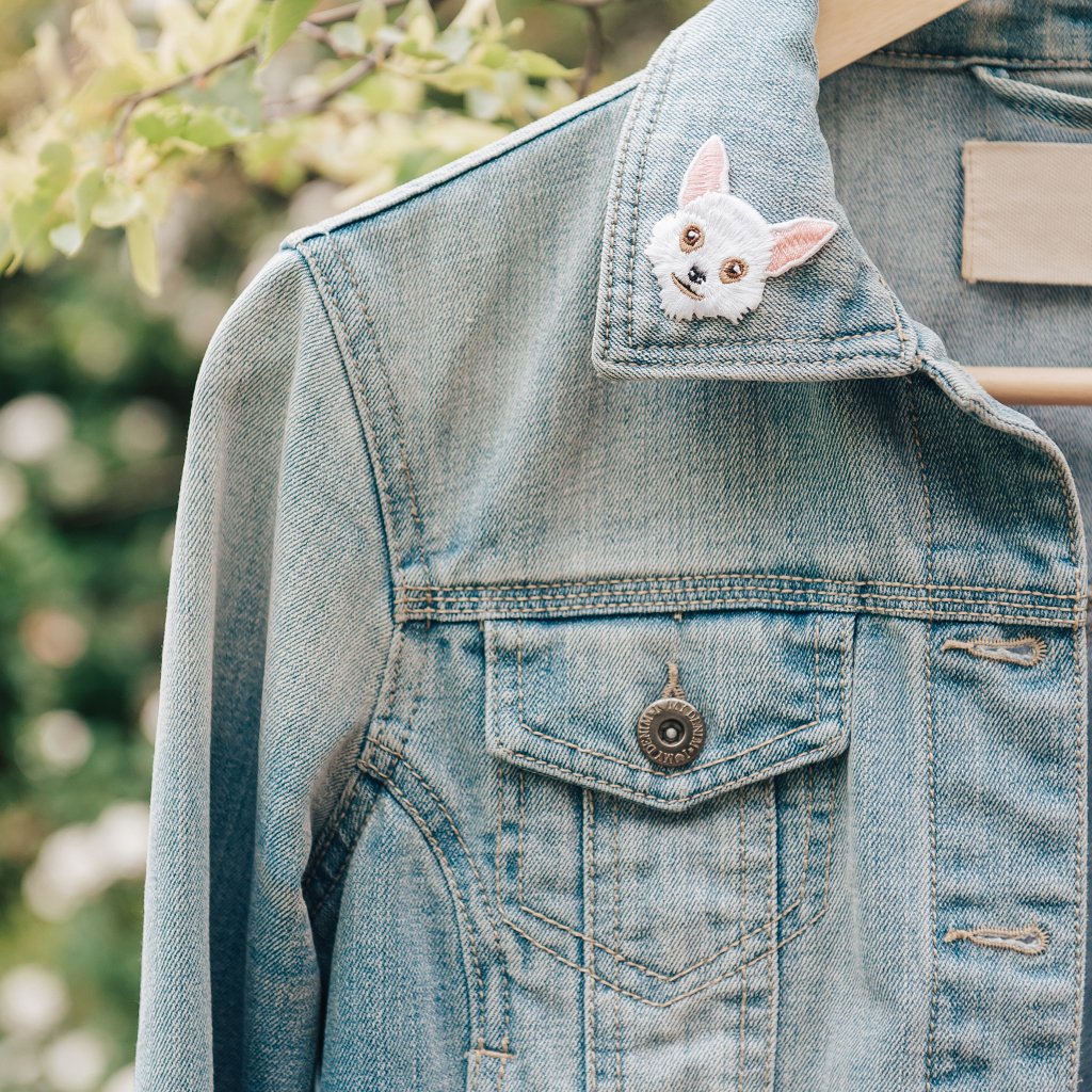 Nažehlovací nášivka Čivava bílá, 4 x 4,3 cm