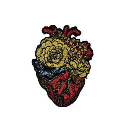 Nažehlovací nášivka Srdce v rozkvětu 9 cm x 6,5 cm