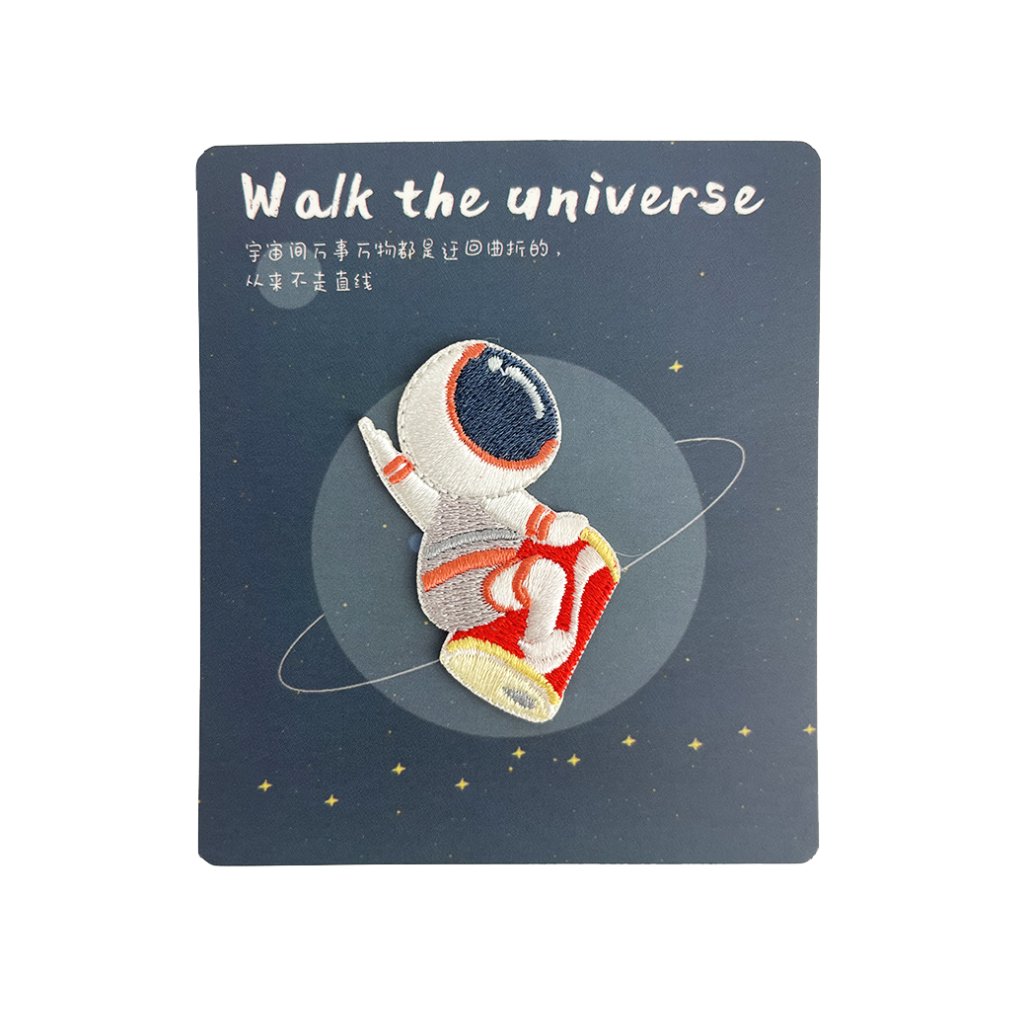 Nalepovací nášivka Astronaut letí na plechovce 5,3 x 2,7 cm