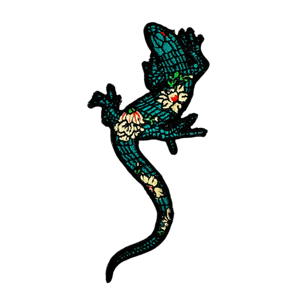 Nažehlovací nášivka Ještěr s květy 4,5 cm x 9,5 cm