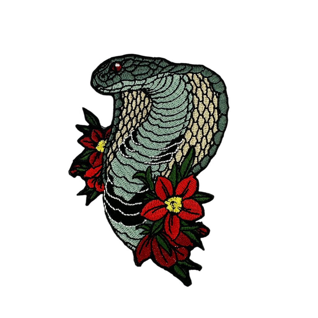 Nažehlovací nášivka Kobra mezi květy 6,5 x 10 cm