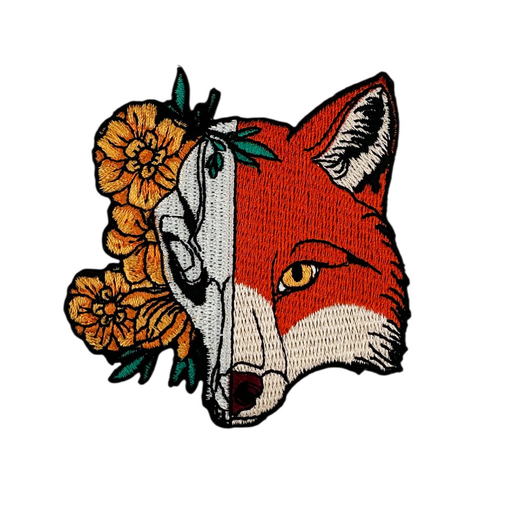 Nažehlovací nášivka Liška skvěty a lebkou 7 cm x 7,5 cm