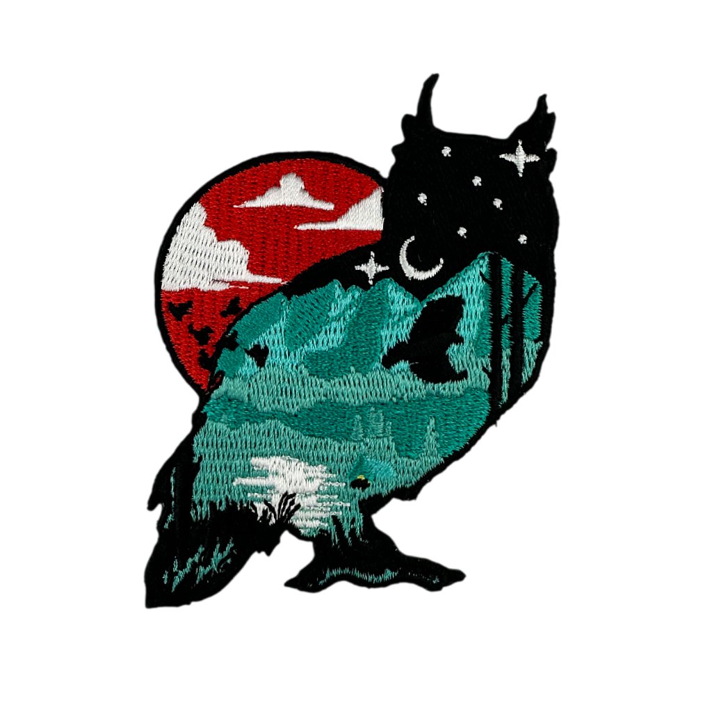 Nažehlovací nášivka Sova v krajině 6 cm x 10,5 cm