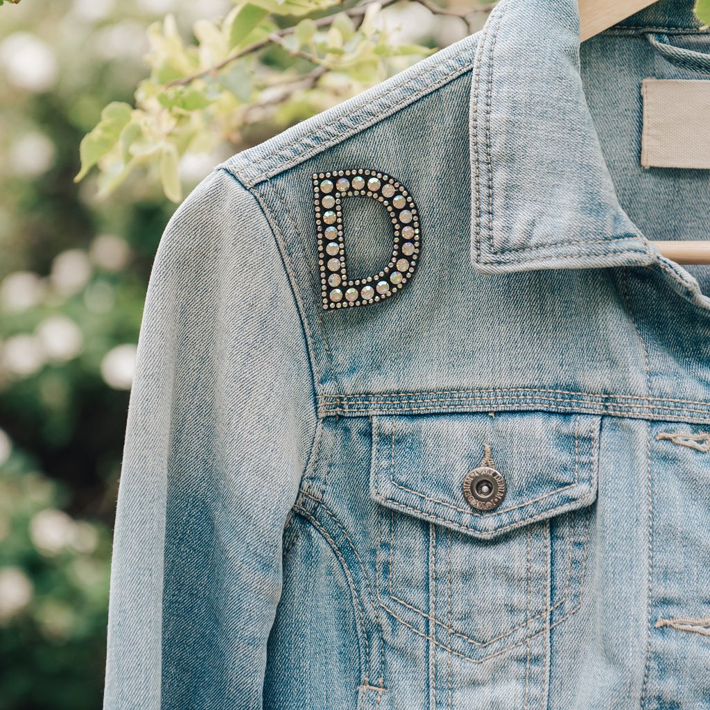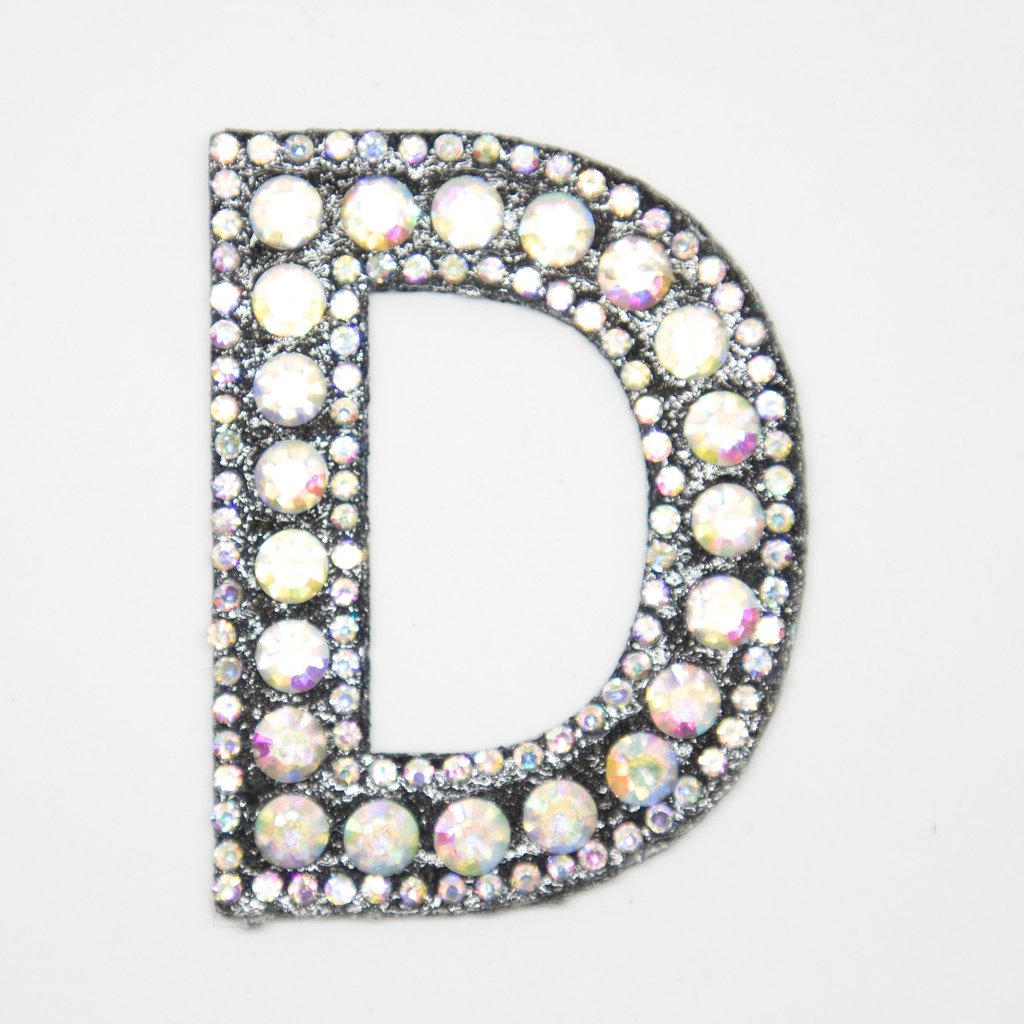 Nažehlovací nášivka Písmeno D třpitivé s kamínky 40 x 53mm
